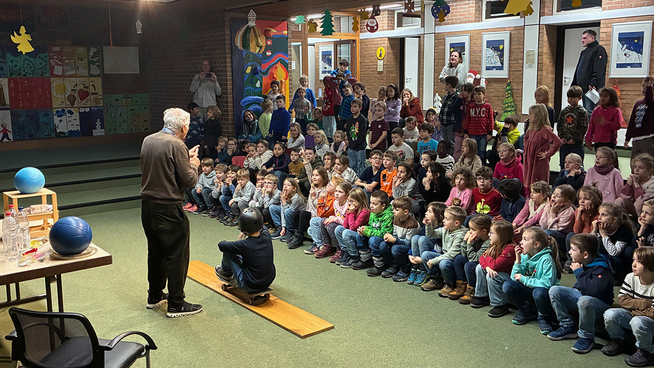 Am Mittwoch, dem 10.12. war es wieder so weit: Physik in der Aula – mit dem Thema Rückstoß. Herr Hüfner zeigte...